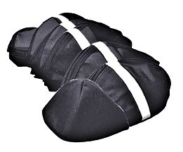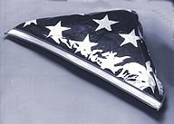 trimmed in red. full width zipper. triangular shape holds traditionally folded flag.