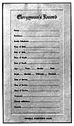 All necessary statistics compiled on compact card. Fill out for clergy who may be