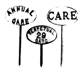 Lettered: PERPETUAL CARE, ANNUAL CARE, ENDOWED CARE, RESERVED, RESERVED CARE, or CARE at no extra charge.