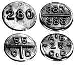letter or digit on marker. Markers with center dots or lot
