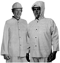 Full sized hood, with nylon drawstring, is dielectrically welded to jacket.