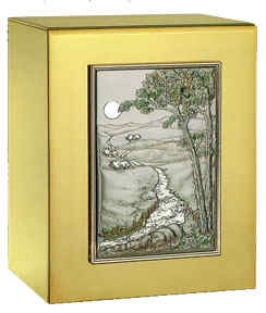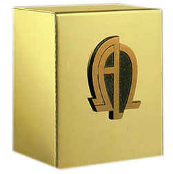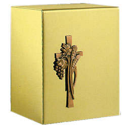 The richness and beauty of highly polished gold on the most durable metal in the world, stainless steel. Each urn has a unique bronze applique for decoration and personalization. This combination of strength and beauty provides true value.